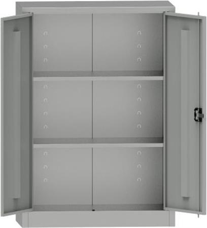 Minőségi acél lemezből készített 2 ajtós 2 polcos masszív tároló fémszekrény.