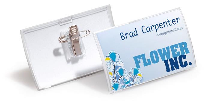 Elegáns és praktikus névkitűző.