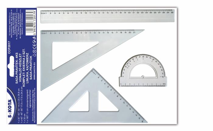 KezdőlapIrodaszerekIrodai kiegészítőkVonalzókVonalzókészlet, műanyag, 4 darabos, SAKOTA