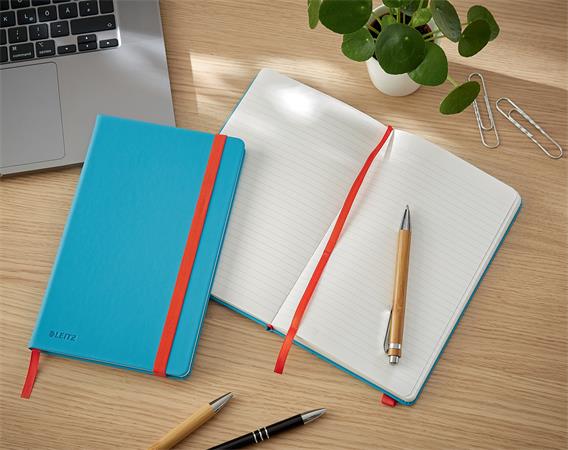 Beíró, A5, vonalas, 80 lap, keményfedeles, LEITZ "Cosy Soft Touch", nyugodtkék
