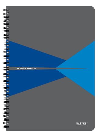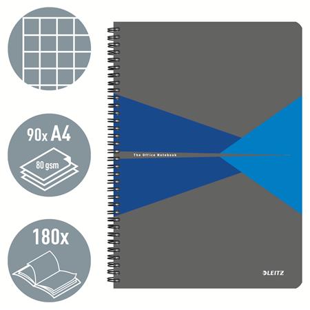 Spirálfüzet, A4, kockás, 90 lap, laminált karton borító, LEITZ "Office", szürke-kék