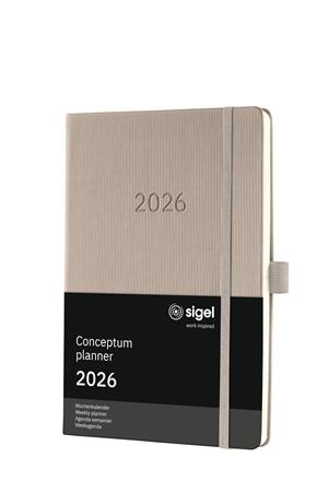 Naptár, A5, heti, 2026, kemény borító, SIGEL "Conceptum", taupe