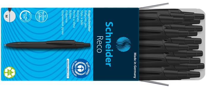 Golyóstoll, 0,5 mm, nyomógombos, fekete színű tolltest, SCHNEIDER "Reco", kék