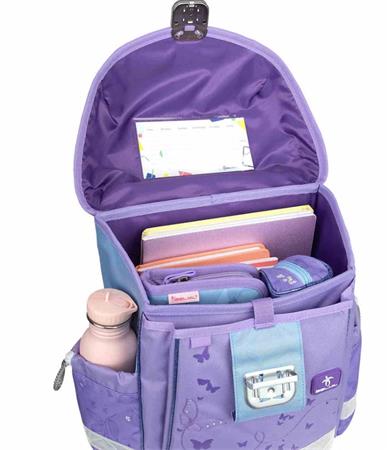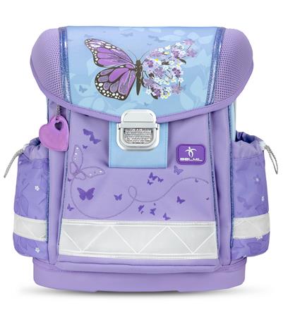 Iskolatáska, fémcsat, BELMIL "Classy Purple Blue Butterfly", pillangó