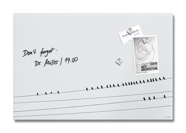 Mágneses üvegtábla, 60x40x1,5 cm, SIGEL "Artverum® ", Little birds mintázat, matt