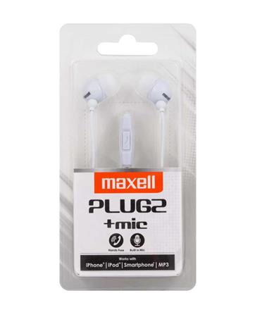 Fülhallgató, mikrofonnal, MAXELL "Plugz", fehér