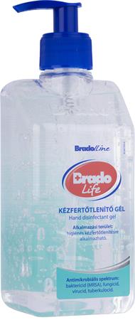 Kézfertőtlenítő gél, alkoholos, pumpás, 500 ml, BRADOLIFE